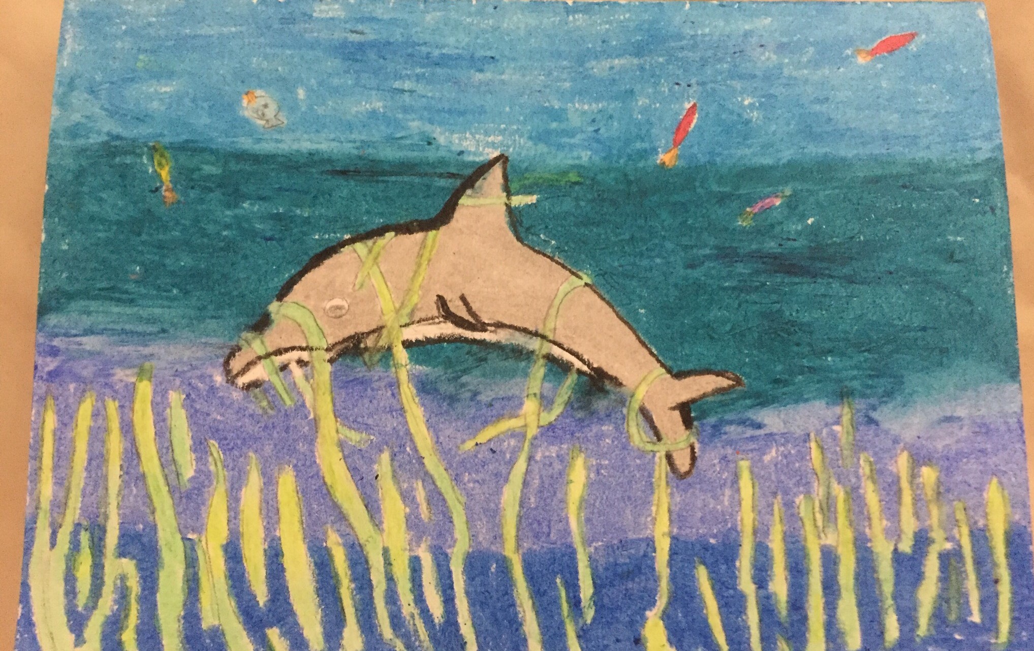 Dolphin stuck in sea weed